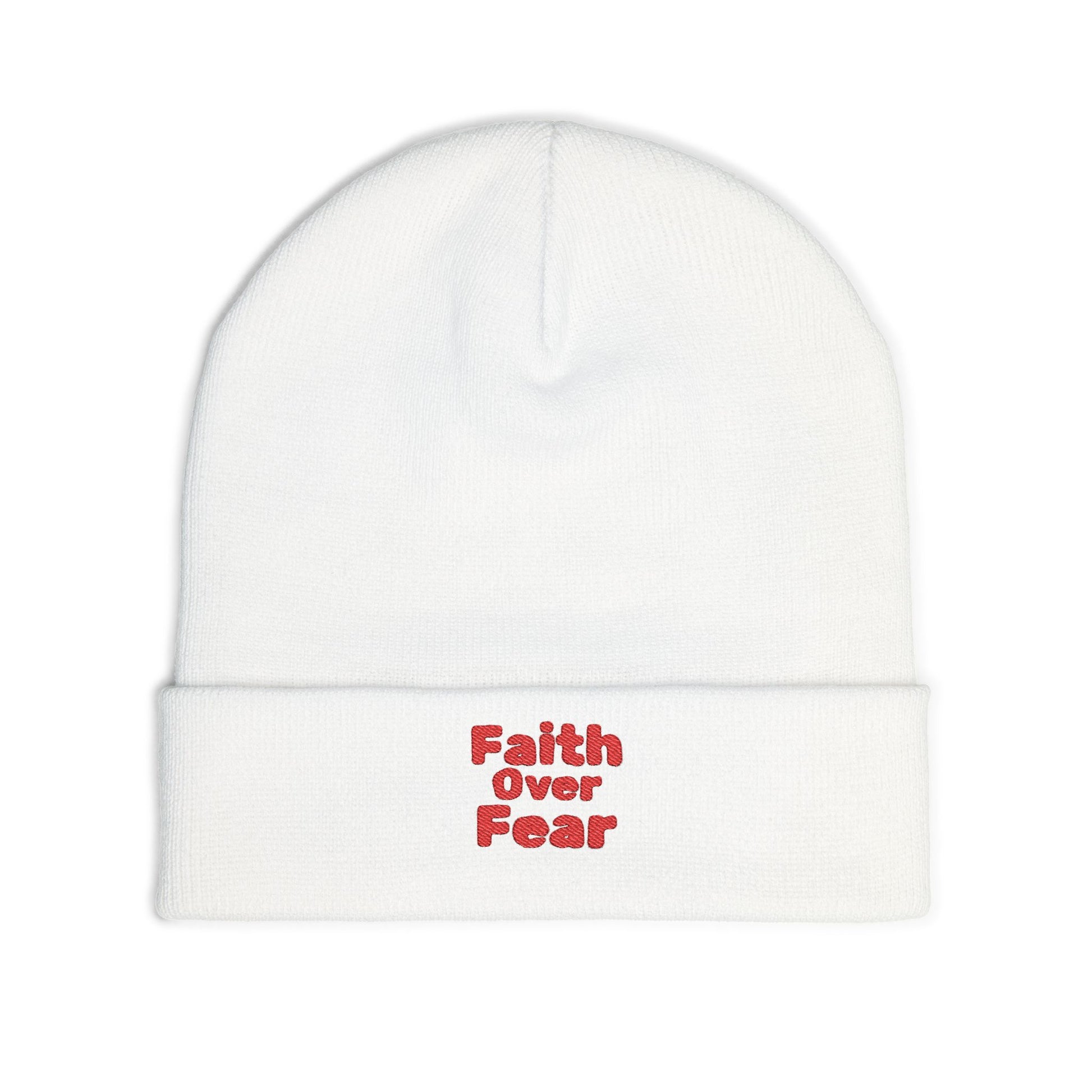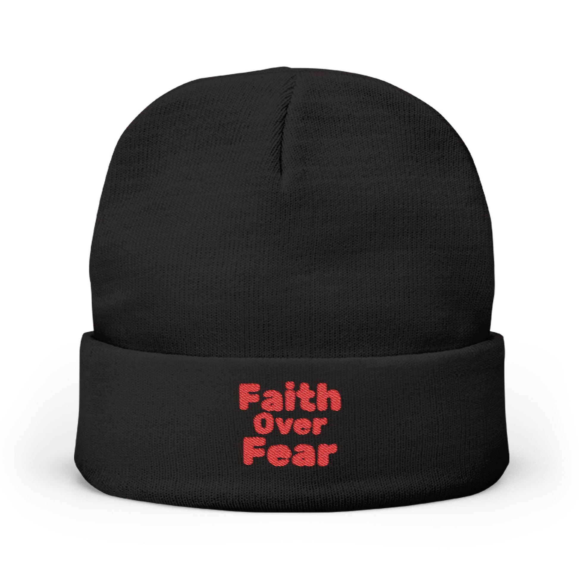 Embroidered "Faith Over Fear" Knit Beanie — Cozy Christian Winter Hat