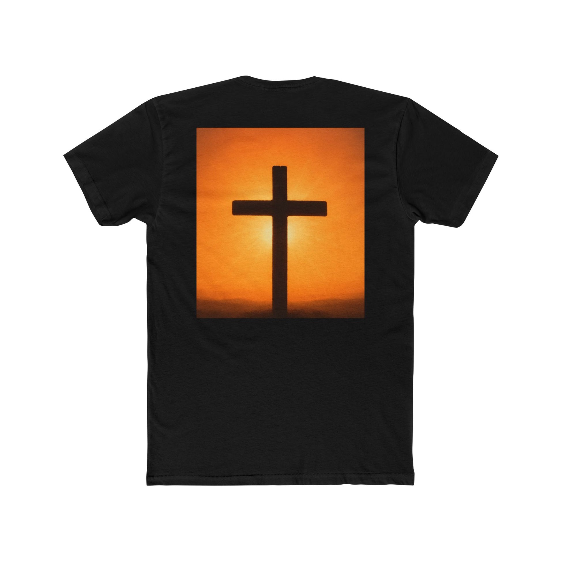 The fabric breathes and moves with you, while reinforced shoulders and side seams keep the shape true. The design’s sunset tones bring a comforting glow to the silhouette, making it feel like carrying a small reminder of faith with you. For people who live their beliefs quietly but confidently, this tee fits into mornings of coffee and scripture, evenings of community, and all the everyday moments in between.